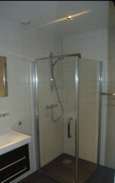 - Bathroom with shower, sink and toilet