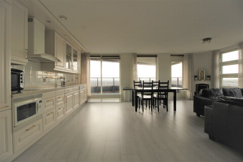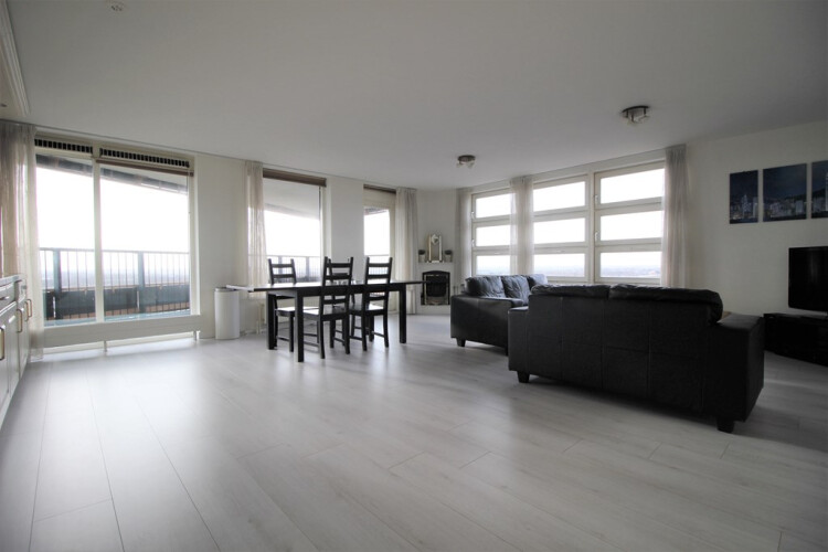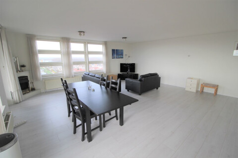 Spacious super bright and partly furnished 2-bedroom apartment on the 10th floor with an amazing view in Amsterdam West. Floors has just been replaced. Tram stops in front of the building and shopping center is in front of the building.