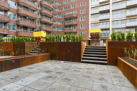 Unique new built corner house with high ceilings and 4-floors at the Laan van Spartaan with open view on the sports amenities. This property is 140m2, has 3 bedrooms, 2 terraces and a private parking garage under the house. The living room has a spacious open kitchen and large glass doors with access to the main terrace. The house is easy to reach by public transport and by car. The area is very child friendly.