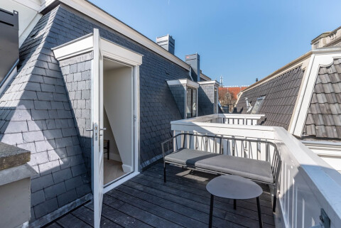During the renovation of this building, conscious choices were made for sustainable redevelopment on the one hand and the preservation of the original architectural aspects on the other, achieving a highly luxurious standard. All apartments are furnished with high-end design furniture and equipped with high-speed internet, a water purification installation, a high-quality ventilation system, and have an A+ energy rating. All apartments come with mandatory bi-weekly cleaning.