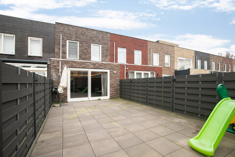 Deze tussenwoning is ingedeeld met een ruime tuingerichte woonkamer en woonkeuken op de begane grond en 4 slaapkamers en 1badkamer verdeeld over de bovenverdiepingen. Er zijn een groot dakterras van 26m2 en een makkelijk te onderhouden tuin aanwezig, die beide op het zuidwesten gelegen zijn.
