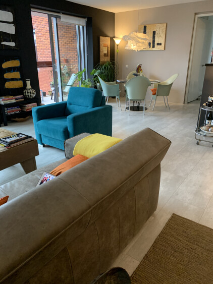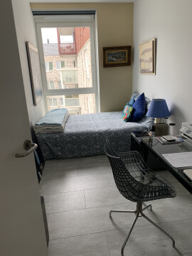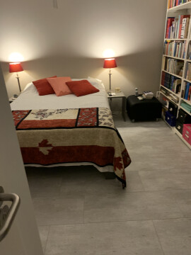 Het appartement is op de 5de verdieping van de Bilderdijktoren, tegenover de ingang van de Hallen. Het heeft een grote woonkamer, 46 m2, met open keuken. Een master bedroom 16,5 m2 en nog 2 kleinere slaapkamers. 2 badkamers, waarvan éen met ligbad. Er is één royale hal en één kleinere. Een tweede aparte wc. Het appartement heeft een inpandige berging met wasmachine aansluiting 3m2, en een grote berging op verdieping -2, waar ook een gratis parkeerplaats is. Het balkon,10m2, heeft van één kant uitzicht over het Westen van de stad en namiddag zon. Het hele appartement heeft vloerverwarming, inductie koken, koelkast, combi-oven en vaatwasser.