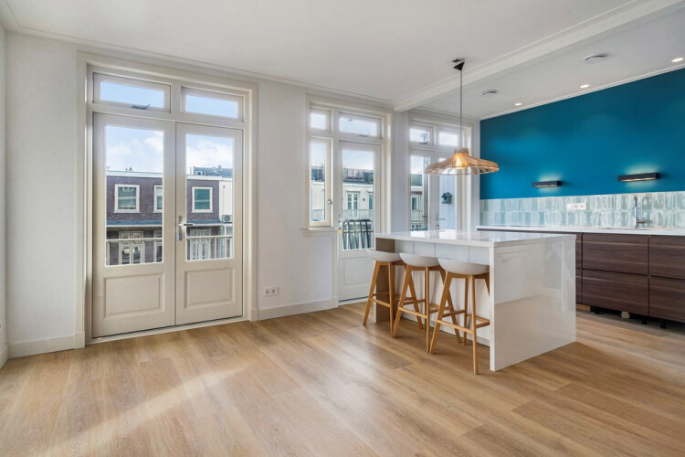 Recently completely renovated, (2023) luxurious and highly energy sufficient 6-room apartment (of approx. 145m2) with a roofterrace in one of the most beautiful streets of the attractive Hoofddorpplein neighborhood in Amsterdam-South!
