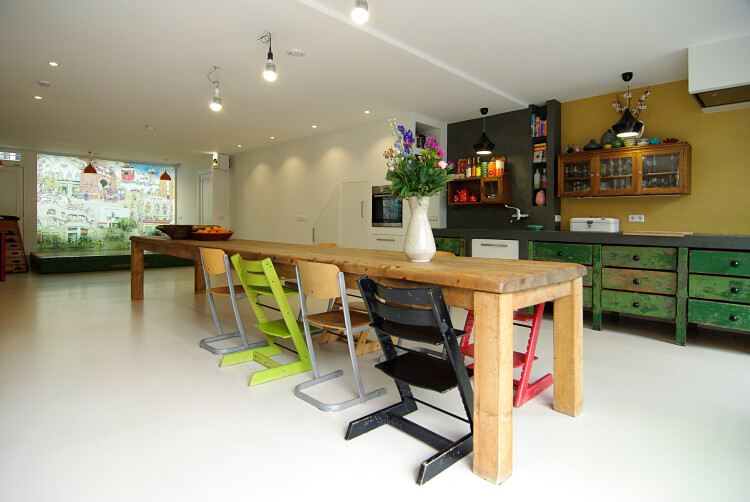 I present a large and comfortable apartment/home with a size of 280 square meters. This apartment large living room of cca 110 square meters is located on the ground floor of two joined buildings. From this living room you have access to south garden of cca 65 square meters and large storage. (the storage is not on the pictures). First floor and has a sleeping and office areas with sunny view on to the garden. French balcony is overlooking the street at the front side. This apartment is ideally located near the river Amstel in fully renovated building (2015). 3 kayaks are at your disposal in the storage for your Amsterdam water discoveries.