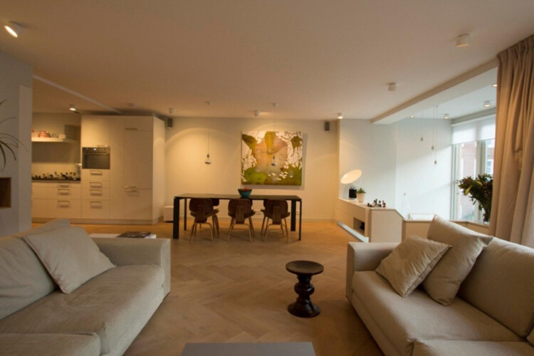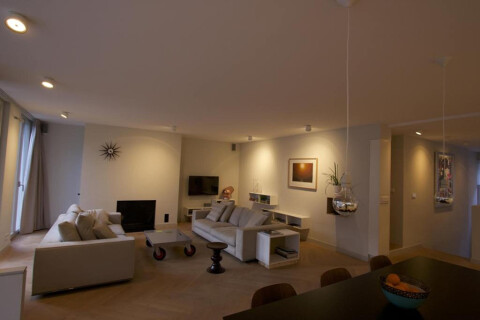 The house has the newest domotica for all equipment, including the opening of entrances and light plans, controllable by mobile phone as well. During renovation only the highest quality of materials have been used and the design is not only very special; it is also very practical living here. Through the entrance with access to the guest room and wardrobe, one enters the dining area and living room. The new wooden flooring give this house a warm atmosphere, while living in a monument. The light is poring in through the large windows everywhere, giving one the feeling that it is always summer. The kitchen has a view on the garden and has been designed to make cooking a delight using only top class equipment and using ergonomic features.